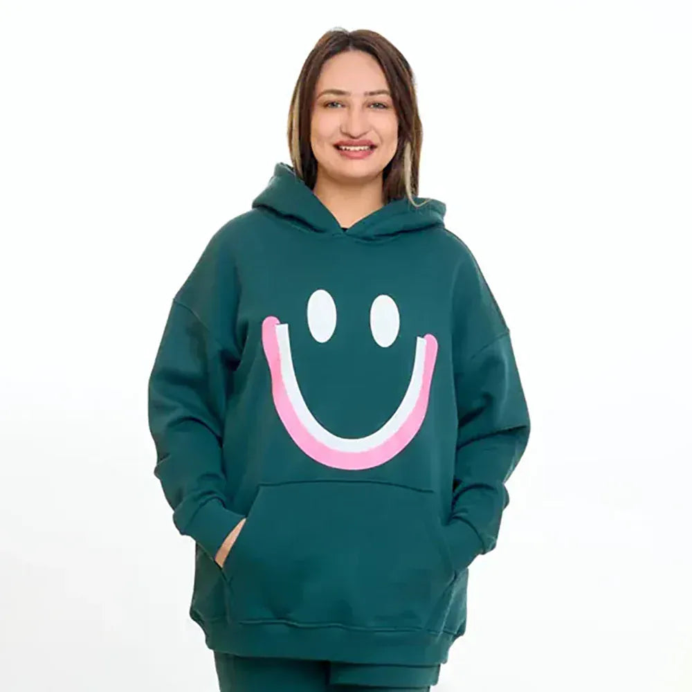 سويتشيرت هودي مطبوع حريمى قطن اسفنجي اخضر شتوي من اتش - smile-Green