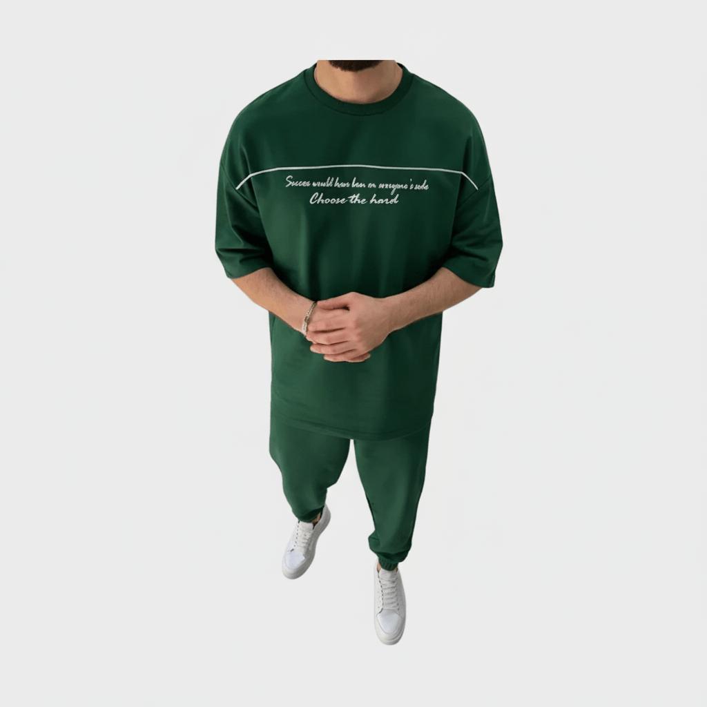 طقم تيشيرت وبنطلون رجالي زيتي من فور براذرز