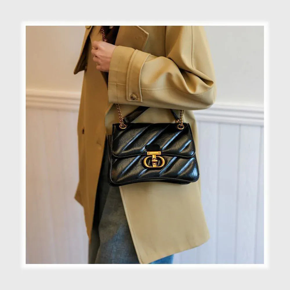 شنطة كروس حريمى جلد 2اسود*لون جميع المواسم من فلامنجو - 91
