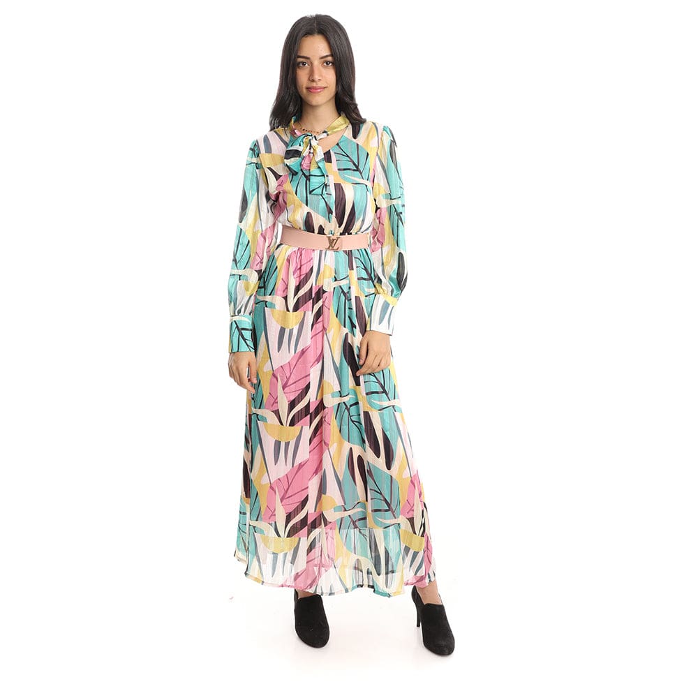 نوع المنتج: فستان طويل بأكمام طويلة - طباعة بحزام