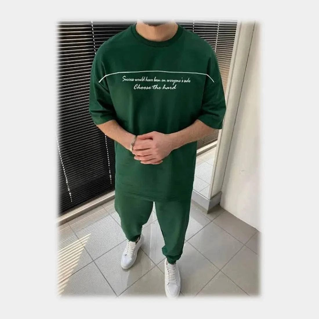 طقم تيشيرت وبنطلون رجالي زيتي من فور براذرز