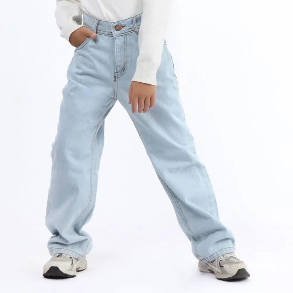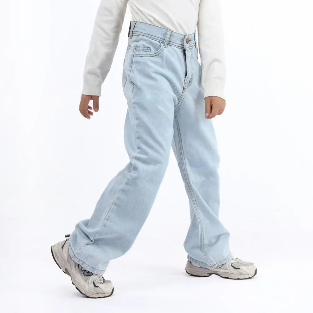 بنطلون جينز وايد ليج اولادي جينز رباعيه قطن 100 % ازرق فاتح جميع المواسم من ايجي وير جينز - rgc03-366-light-blue