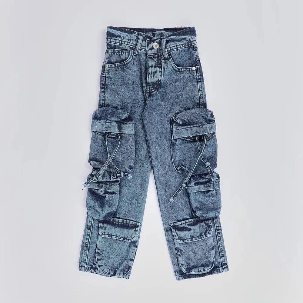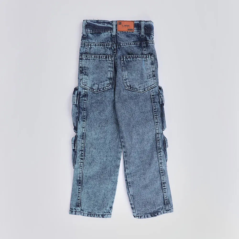 بنطلون 4 جيب نفخ اولادي من سن 6 سنين ل 12 سنه بوي فريند تلبيس واسع جميع المواسم جينز فاتح من الأنطوني جينز - 3018-dark
