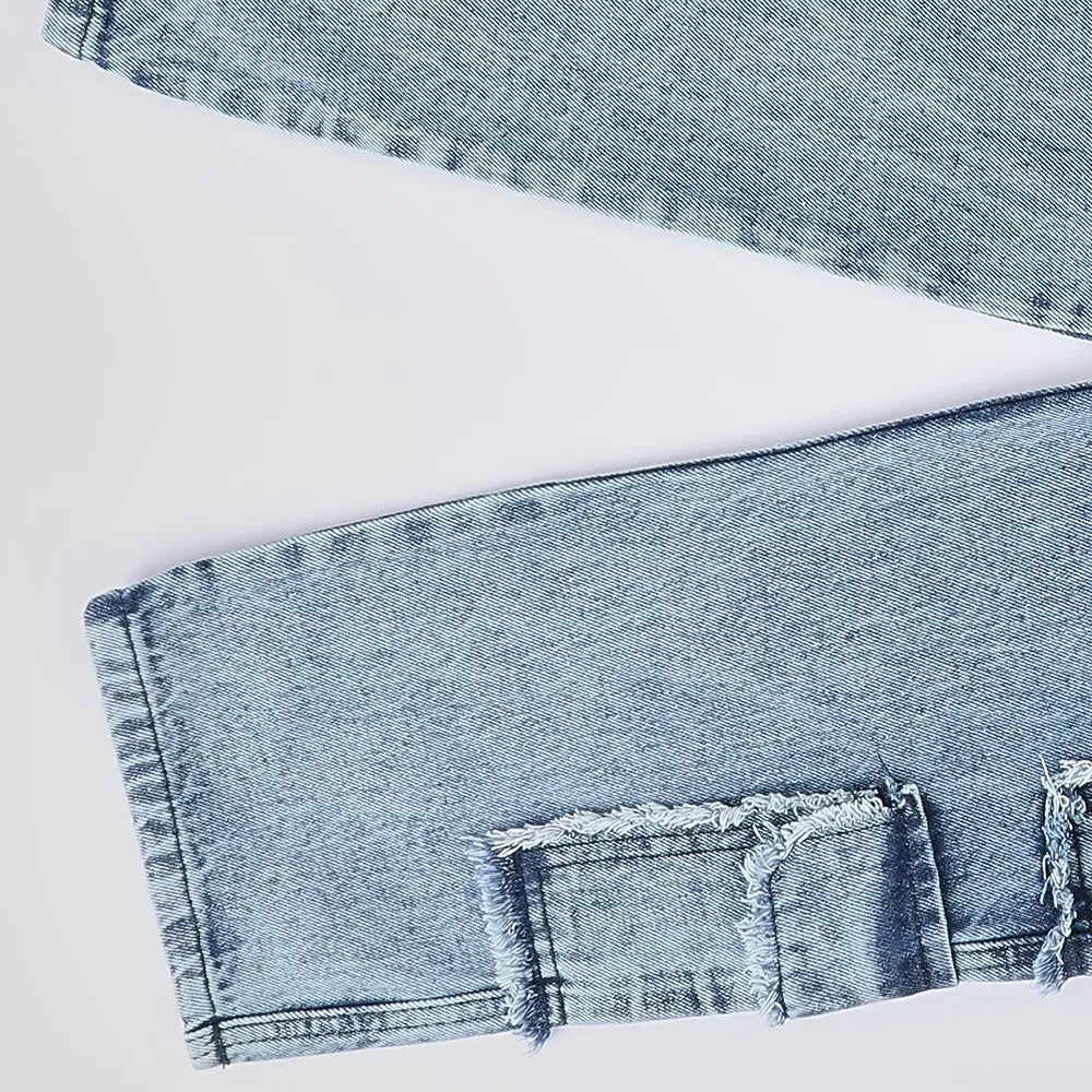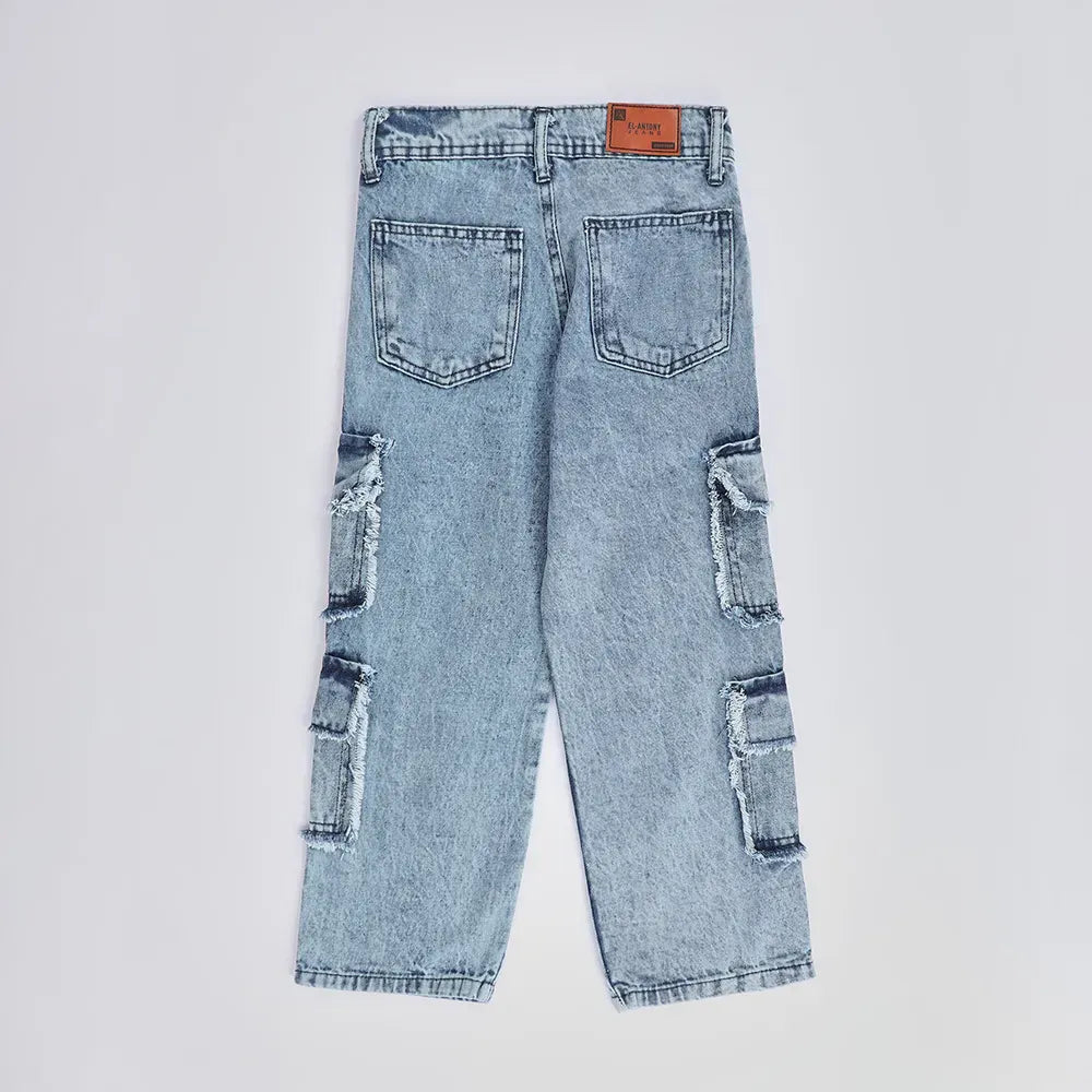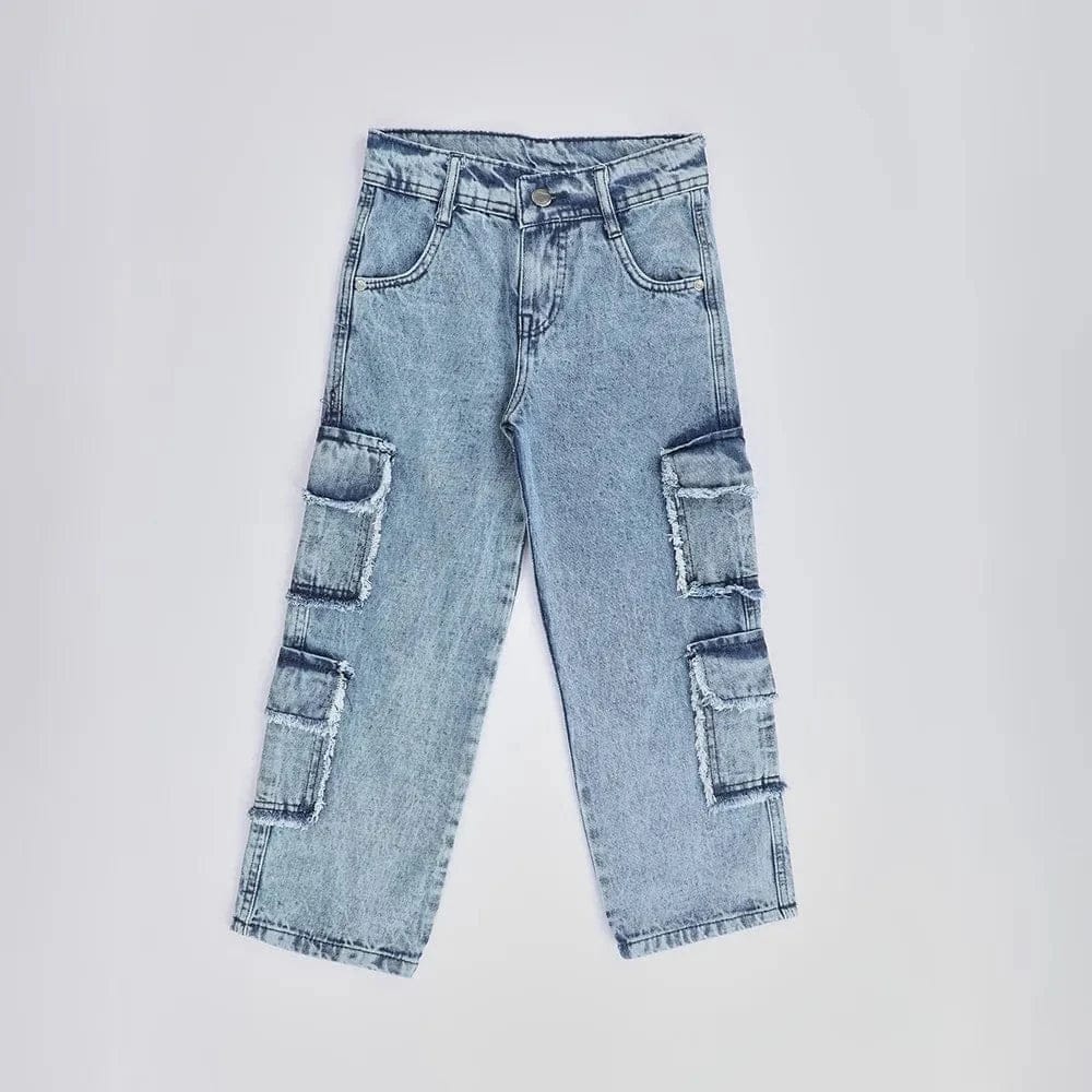 بنطلون 4 جيب شراشيب بناتي من سن 6 سنين ل 12 سنه بوي فريند تلبيس واسع جميع المواسم جينز فاتح من الأنطوني جينز - 4014-light