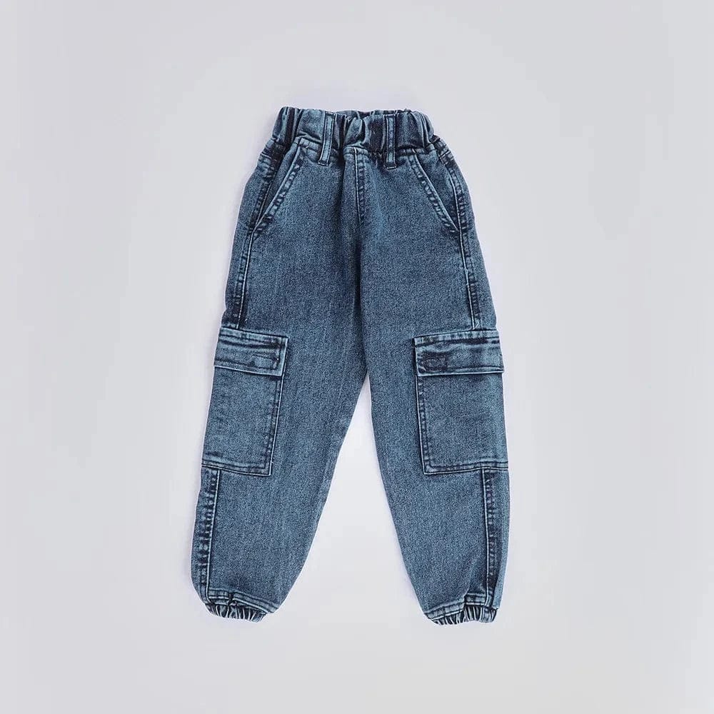 بنطلون باجي استك اولادي من سن 6 سنين ل 12 سنه بوي فريند تلبيس واسع جميع المواسم جينزغامق من الأنطوني جينز - 3044