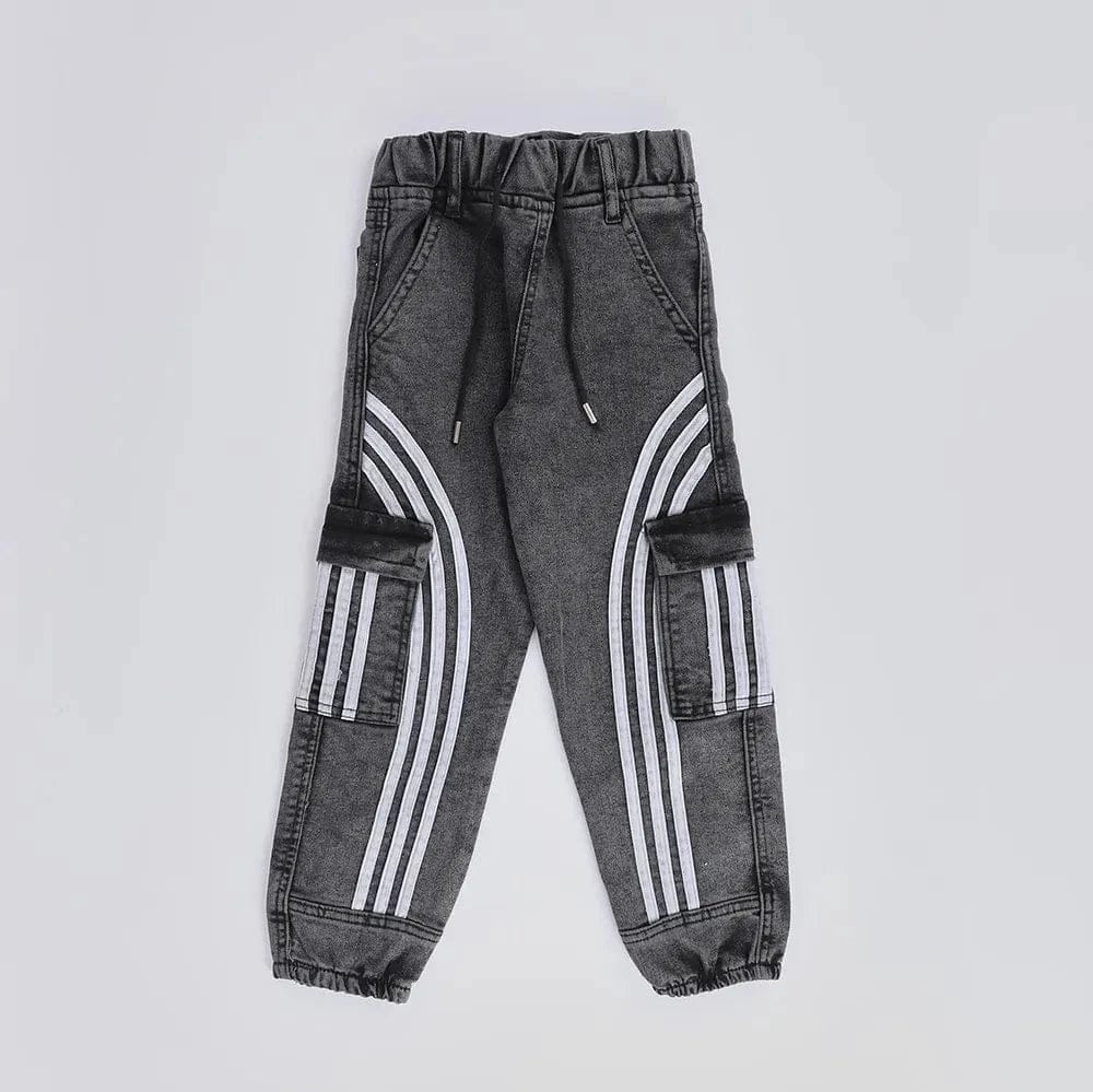 بنطلون اديداس باجي استك اولادي من سن 6 سنين ل 12 سنه بوي فريند تلبيس واسع جميع المواسم رمادي غامق من الأنطوني جينز - 3058-grey