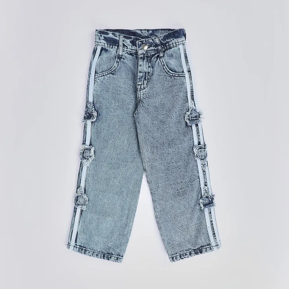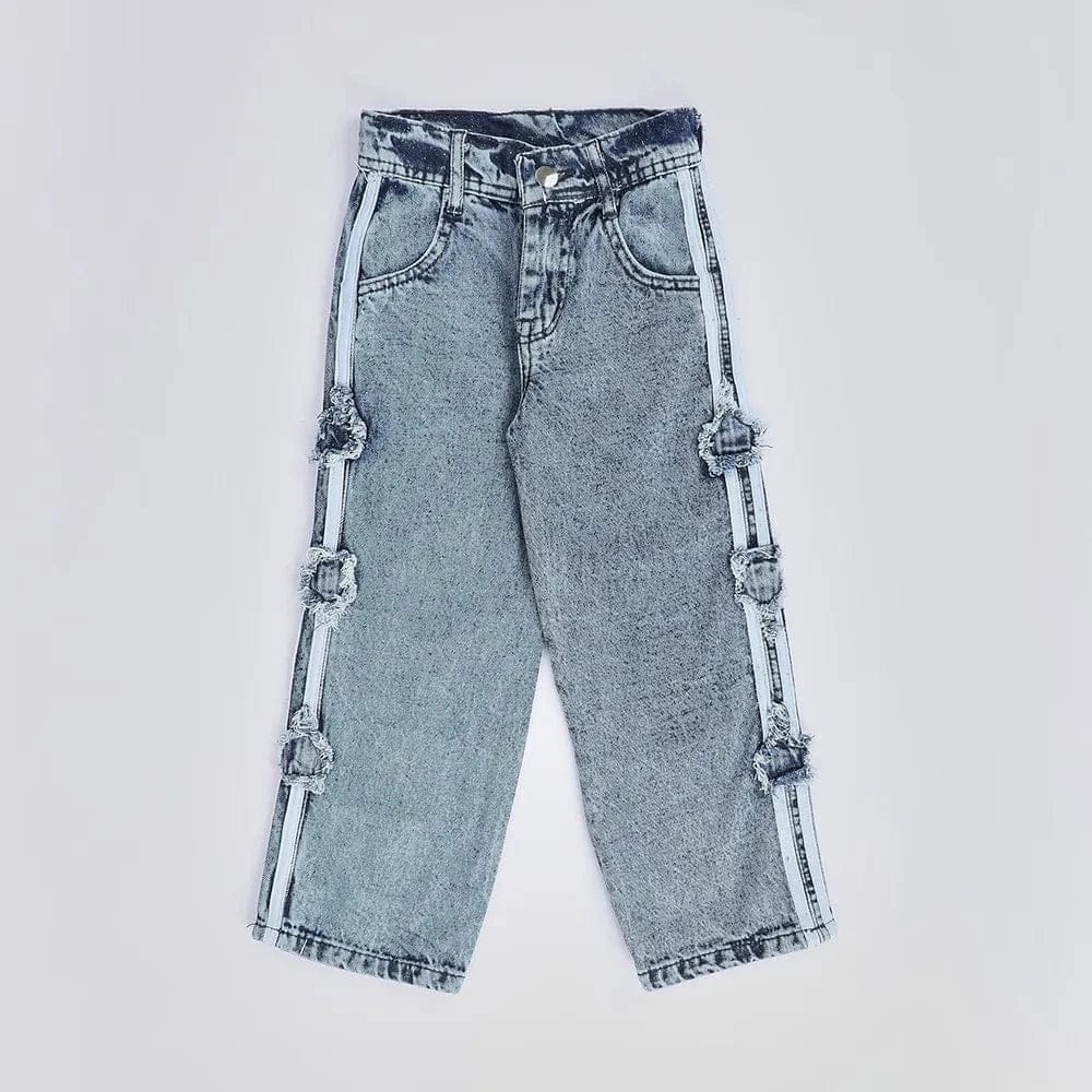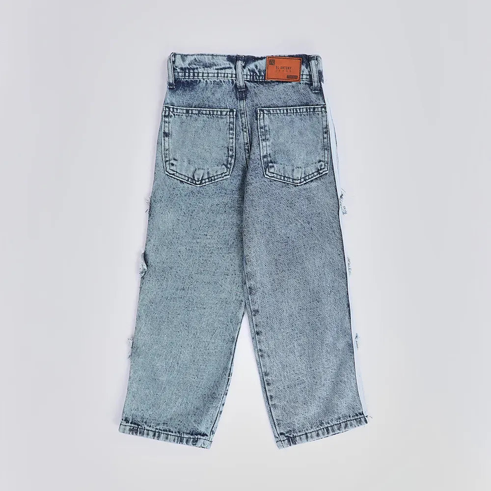 بنطلون اديداس قلوب بناتي من سن 6 سنين ل 12 سنه بوي فريند تلبيس واسع جميع المواسم جينز فاتح من الأنطوني جينز - 4023-light