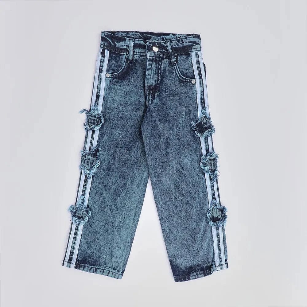 بنطلون اديداس قلوب بناتي من سن 6 سنين ل 12 سنه بوي فريند تلبيس واسع جميع المواسم جينزغامق من الأنطوني جينز - 4023-dark