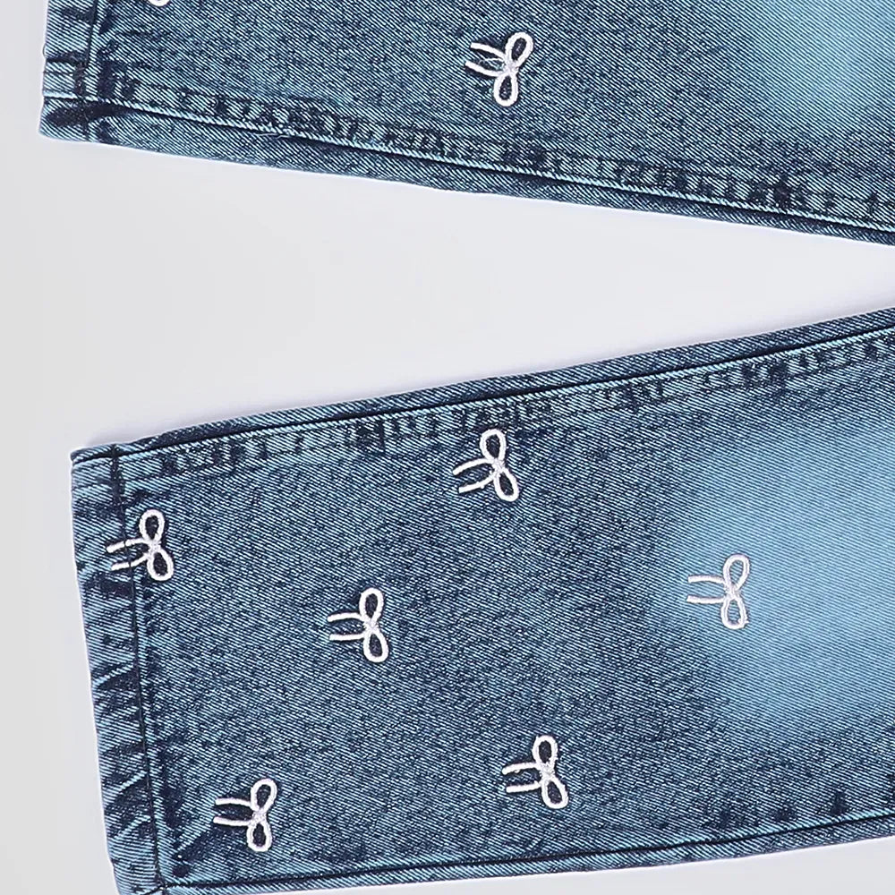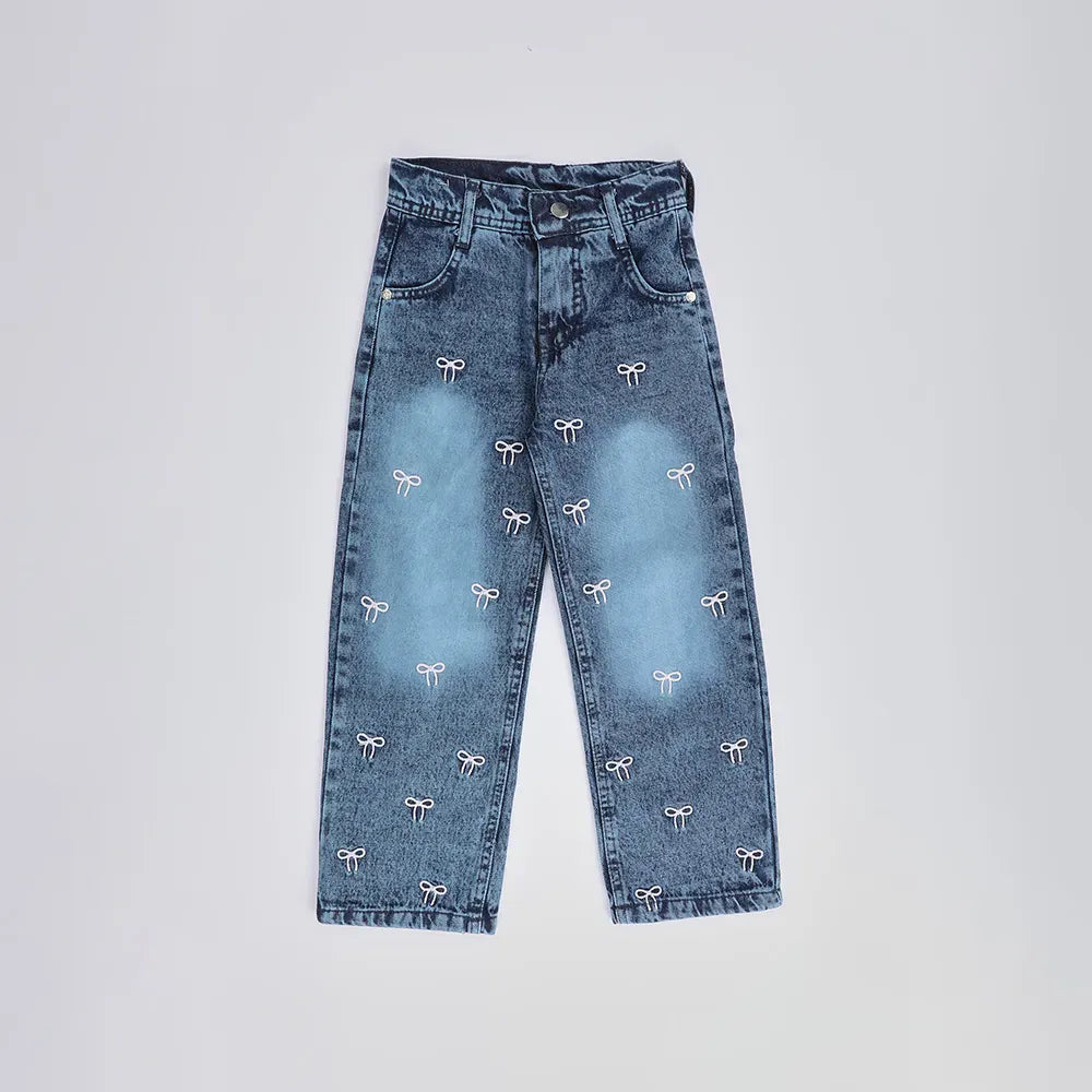 بنطلون فيونكه بناتي من سن 6 سنين ل 12 سنه بوي فريند تلبيس واسع جميع المواسم جينزغامق من الأنطوني جينز - 4042