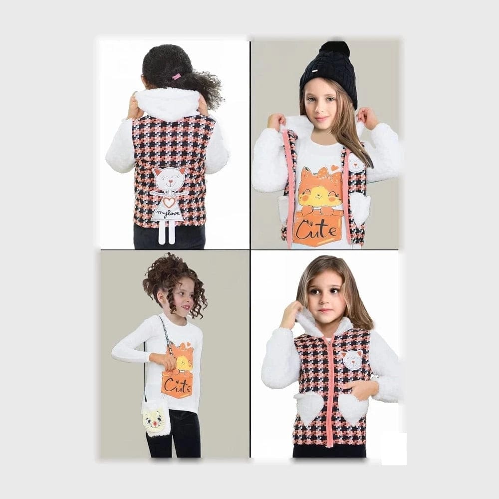 طقم 4 قطع اطفالي جاكيت وتربروف مبطن فرو وبنطلون قطيفة هايدي وبادي قطن وصابوه فرو ألوان متعددة شتوي من إيه إل واي - 14562