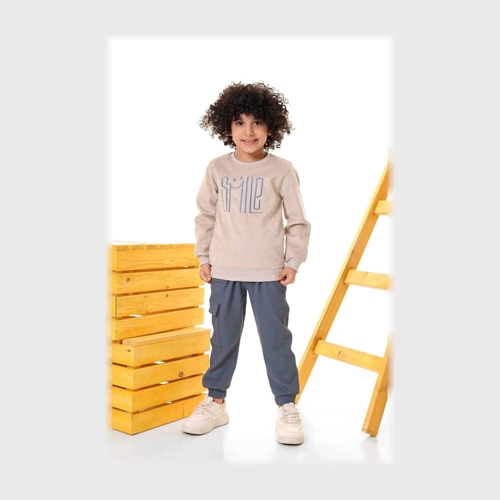 طقم قطعتين اولادي اولادي بنطلون ملتون جكار مبطن قطيفة جكار تقيل ضهر هايدي ألوان متعددة من روزانا - 4123