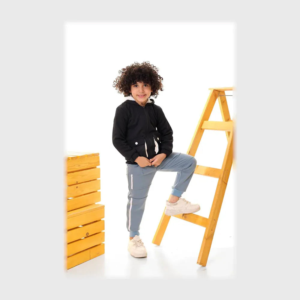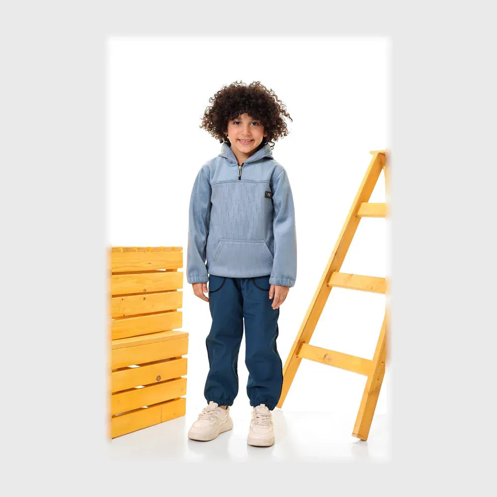 طقم قطعتين اولادي اولادي بنطلون سوفت ضهر هايدي قطيفة جكار تقيل ضهر هايدي ألوان متعددة من روزانا - 4121