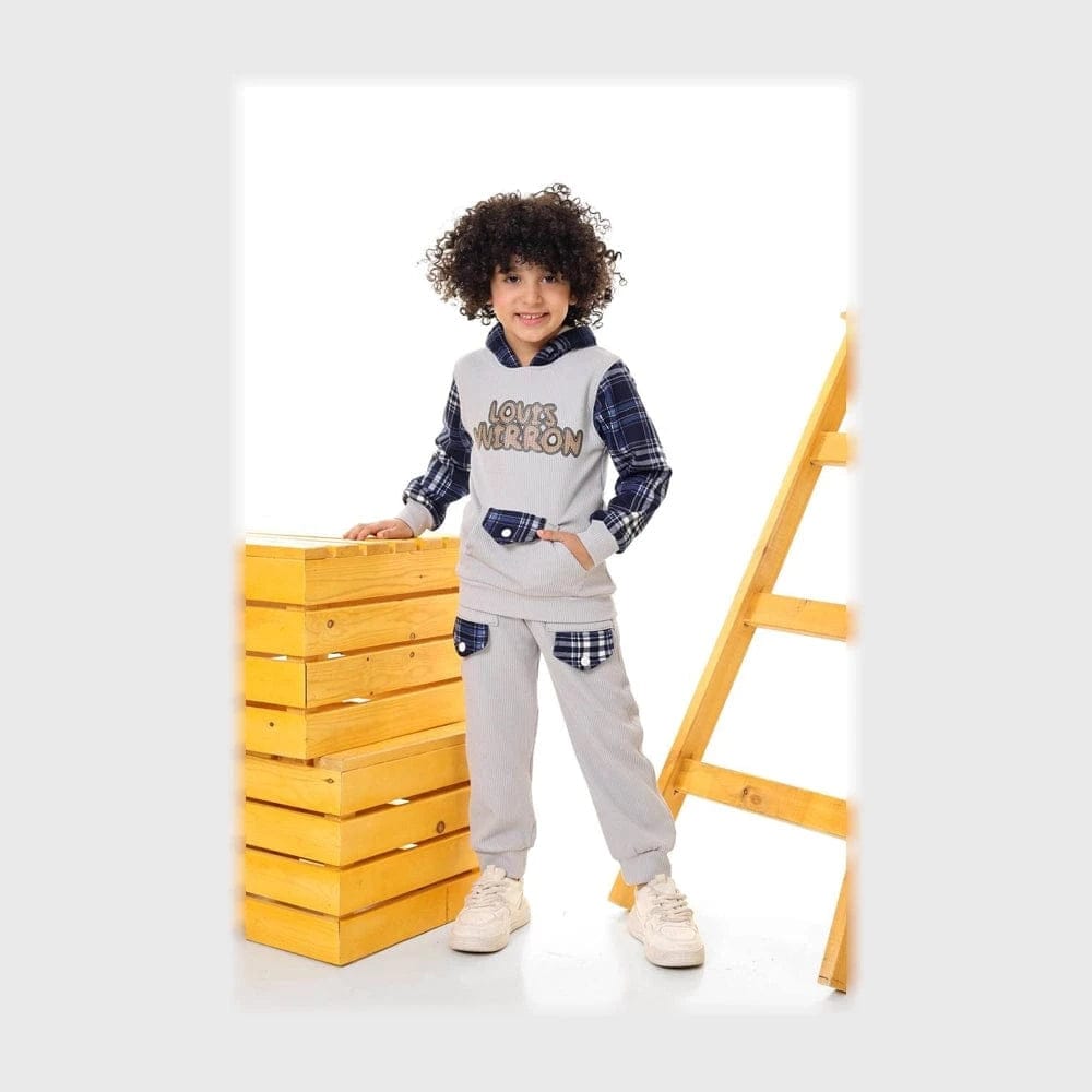 طقم قطعتين اولادي اولادي بنطلون وبلوزة قماش ملتون جكار مبطن مع ملتون كاروه ضهر هايدي ألوان متعددة من روزانا - 4122