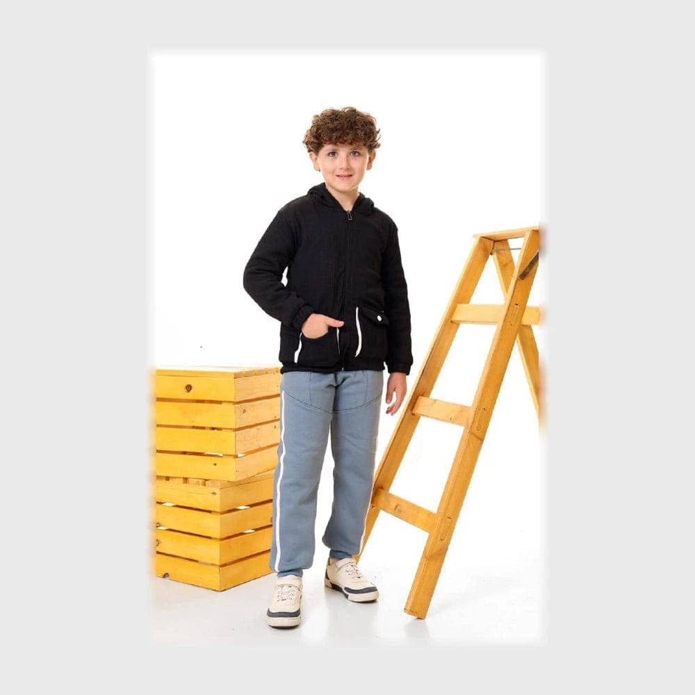 طقم قطعتين اولادي اولادي جاكت جكار سلسلة مبطن فرو بنطلون ملتون قطن مبطن ألوان متعددة من روزانا - 4188