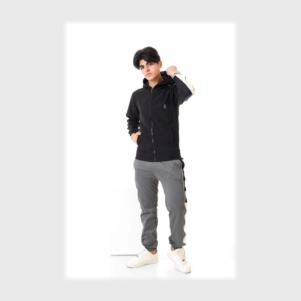 طقم قطعتين اولادي اولادي جاكت سوفت مبطن تقيل ضهر هايدي و بنطلون تك فليس مبطن ألوان متعددة من روزانا - 4195