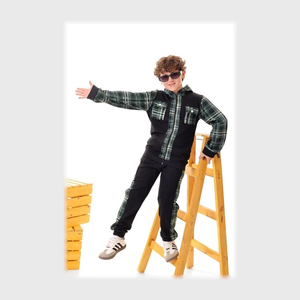 طقم قطعتين اولادي اولادي قماش ملتون جكار سلسلة مبطن مع كاروه مبطن ضهر هايدي ألوان متعددة من روزانا - 4191
