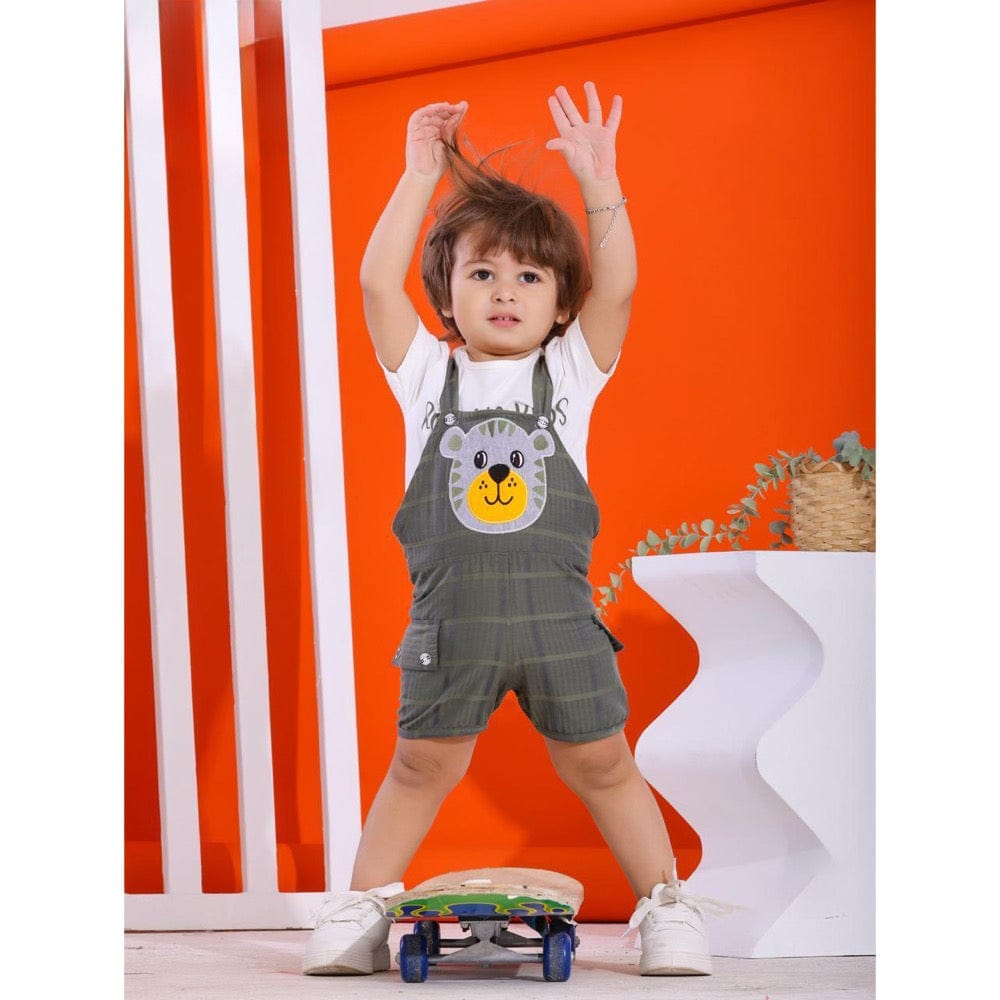 طقم سالوبيت وتيشيرت مطبوع اولادي بوبلين سوفت رمادي صيفي من روزانا-3081-Grey