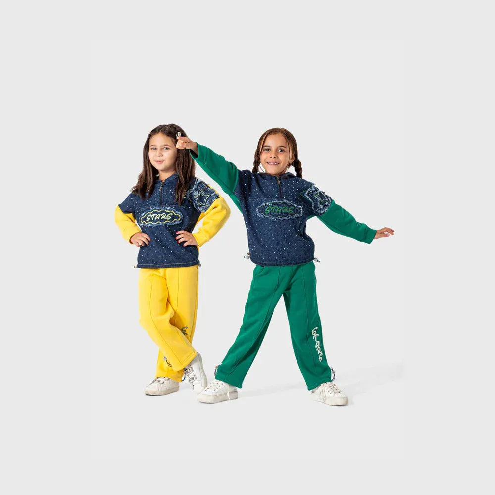 ترنج قطعتين بناتي بناتي ملتون قطن100% مطعم جينز الوان متعددة شتوي من لارك ارت - 5002