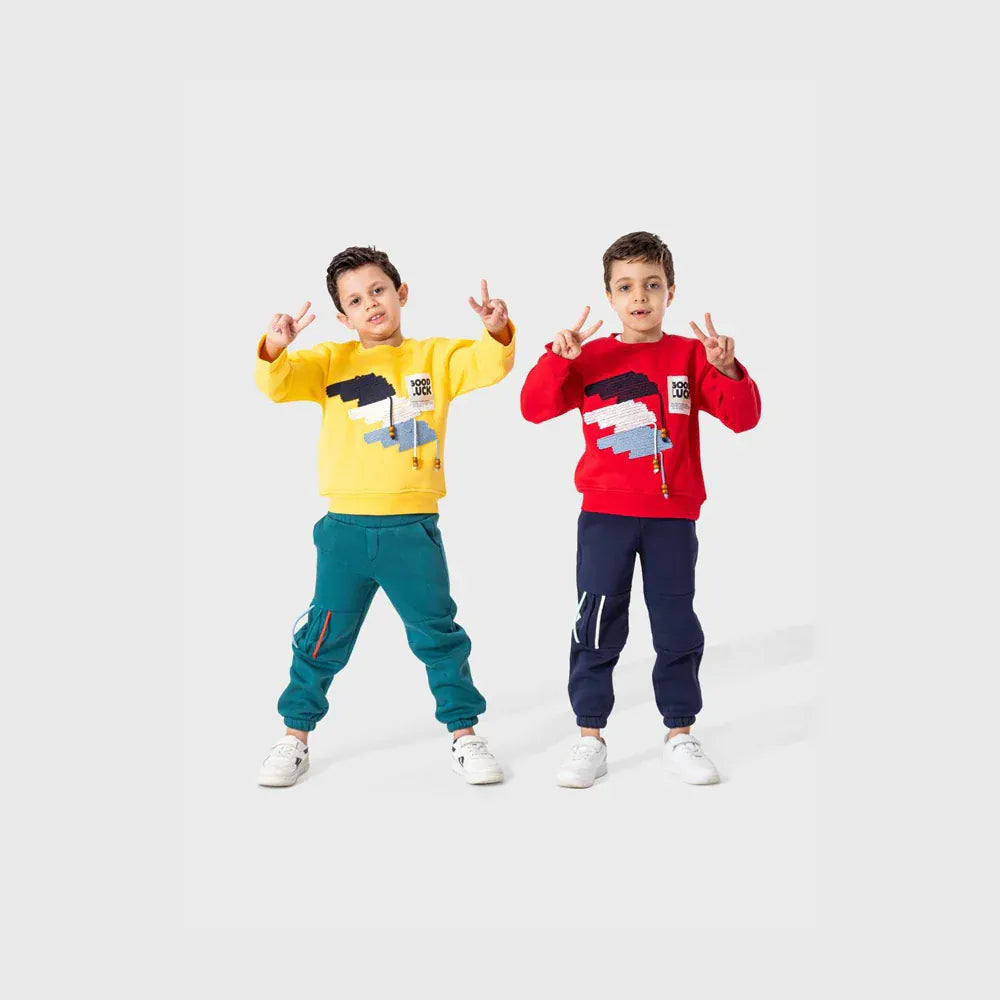 ترنج قطعتين اولادي اولادي ملتون قطن100% الوان متعددة شتوي من لارك ارت - 1006