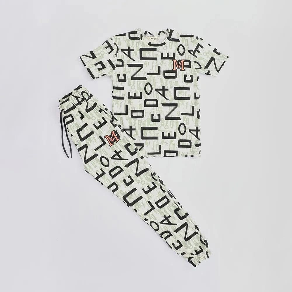 ترينج تيشيرت وبنطلون اولادي بسكوته الوان متعددة صيفي من فرعون-5106