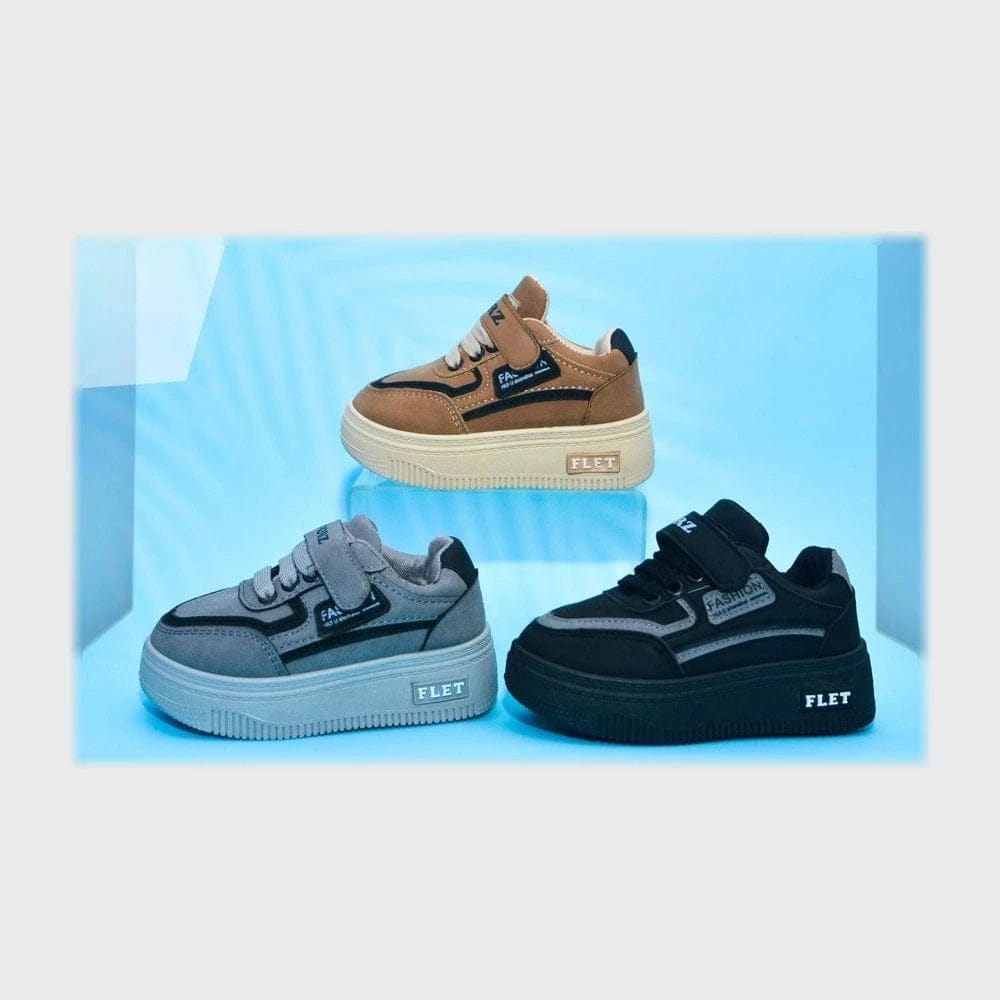 حذاء سنيكرز اطفالى فوندي جلد إسكاي مستورد ونعل PVC حقن الوان متعددة جميع المواسم من الوحيد روك - G-640