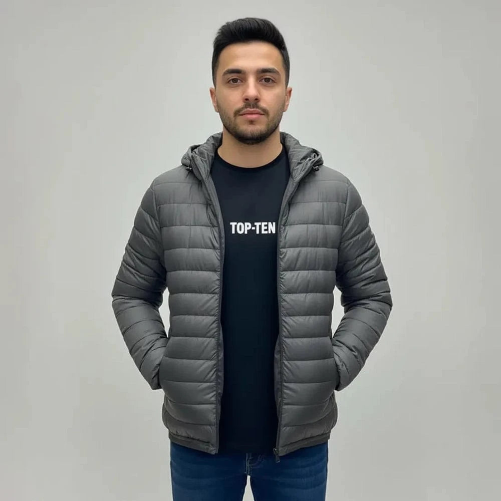 جاكيت بامب بكابيشوه ووتر بروف رجالي سوفت رمادي غامق شتوي من كيه اتش ال - Pump-DG