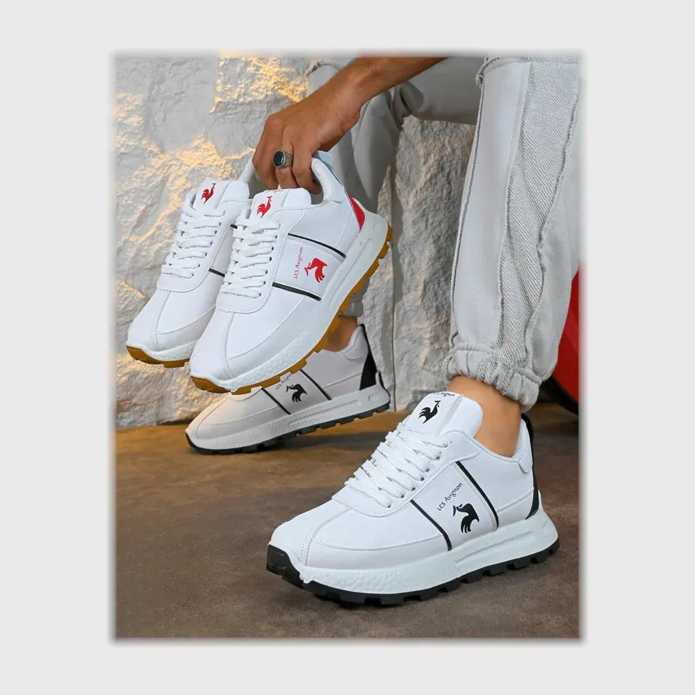 المقاسات: 41-42-43-44-45 العلامة التجارية: لابتوب نوع المنتج : حذاء اللون: الوان متعددة وصف المنتج: حذاء سنيكرز الخامة: جلد الفئة المستهدفة: رجالى