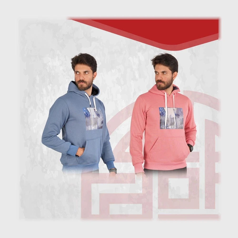 سويتشيرت هودي مطبوع رجالي ميلتون قطن الوان متعددة شتوي من أسامة تكس - 7306