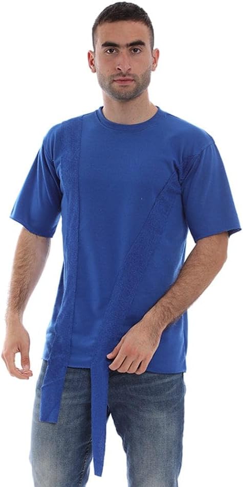 تيشرت نص كم برقبه دائريه رجالي قطن ليكرا ازرق صيفي من ازياء -am-9