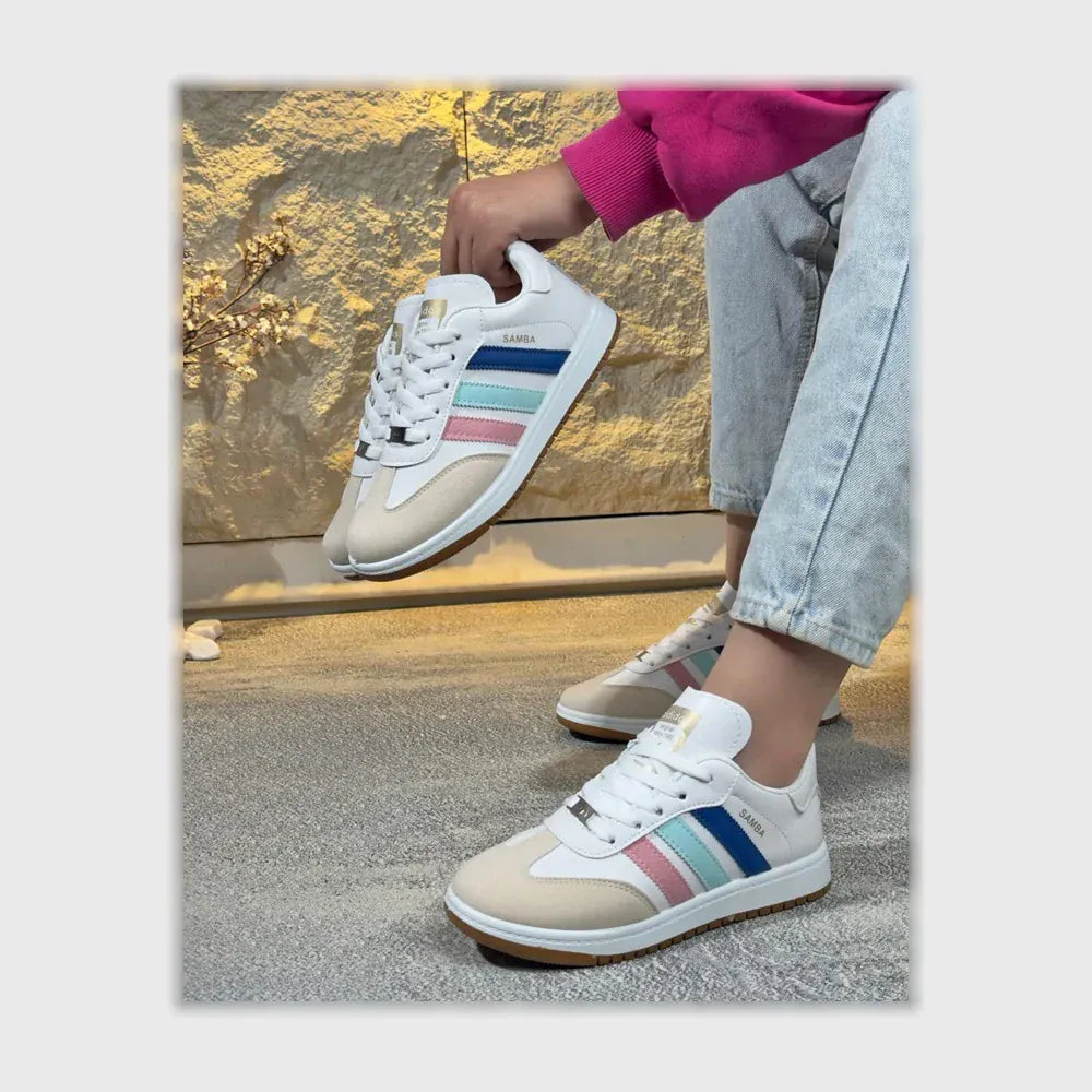 حذاء سنيكرز حريمى فوندي جلد إسكاي مستورد ونعل PVC حقن الوان متعددة جميع المواسم من لابتوب - 887