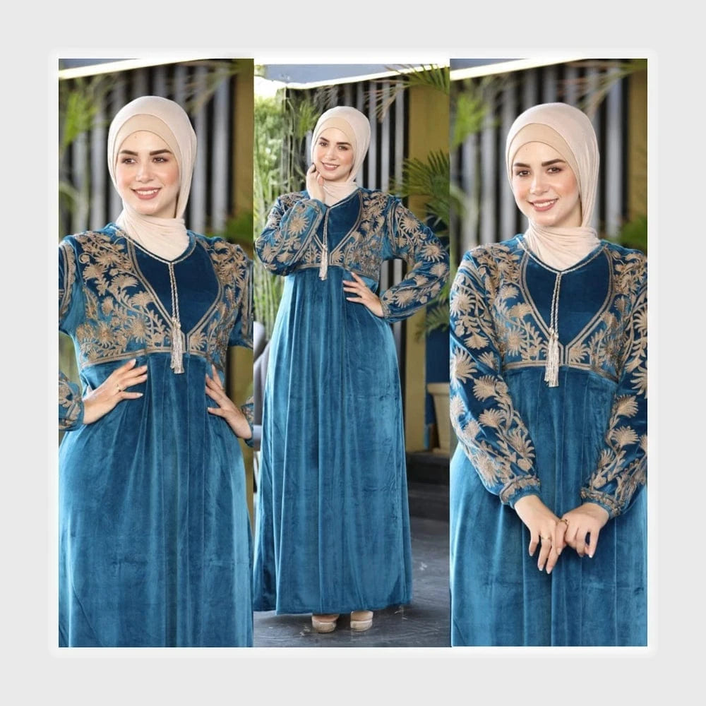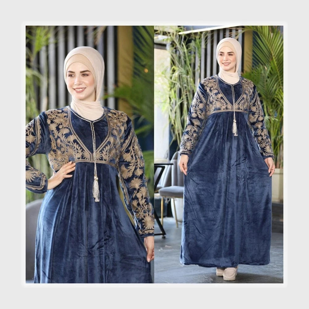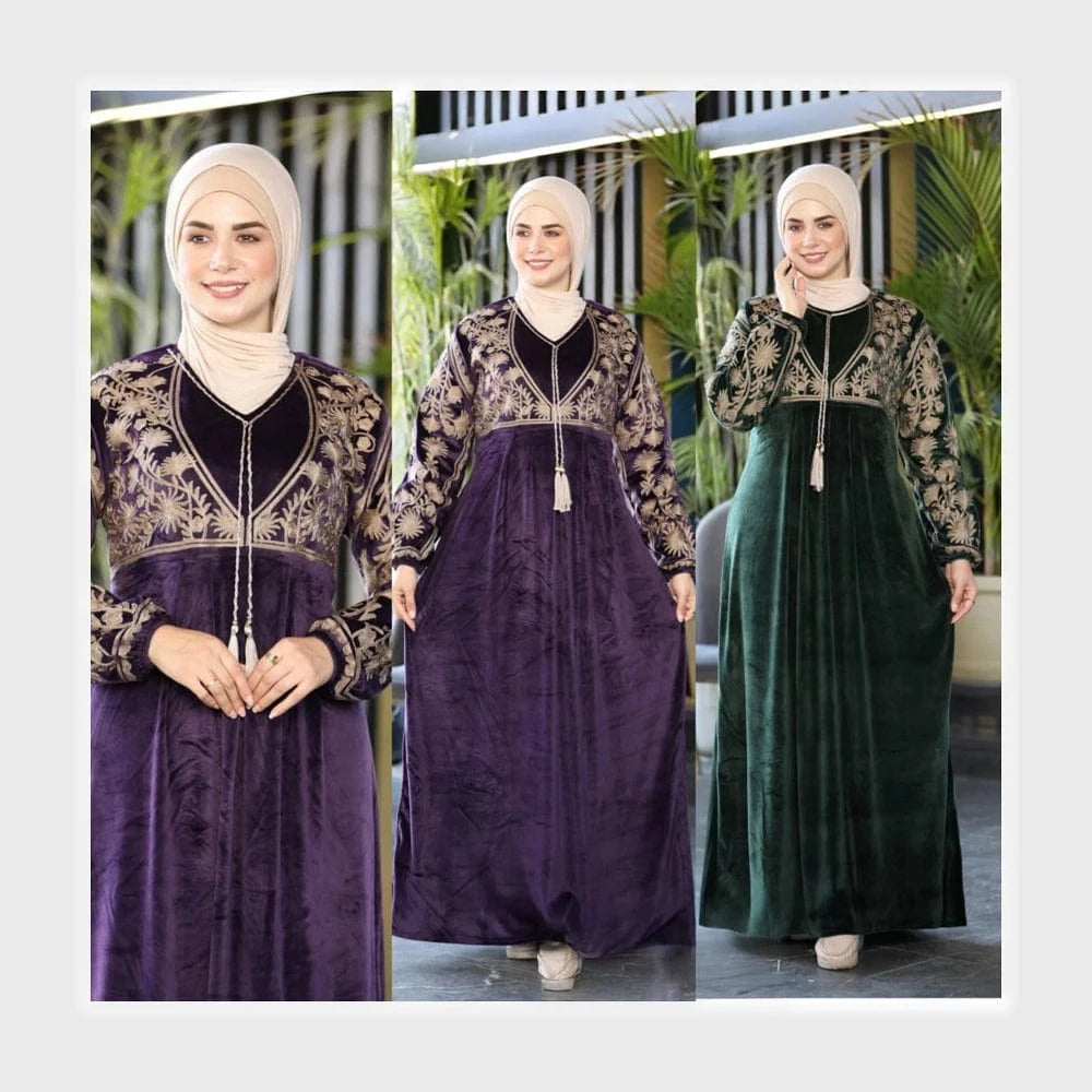 عباية استقبال تطريز حريمي قطيفة هايدي مستورد وش واحد تطريز الوان متعدده شتوي من ايه ال واي - 19520-12