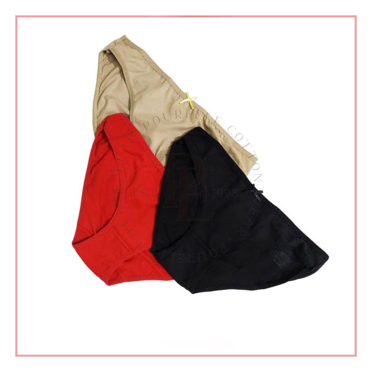 المقاسات: M - L - XL - 2XLاللون: ألوان متنوعةالعلامة التجارية: بوريلنوع المنتج: بانتي بيكينى سادةالخامة: قطن95% سباندكس5%الفئة المستهدفة: حريمى