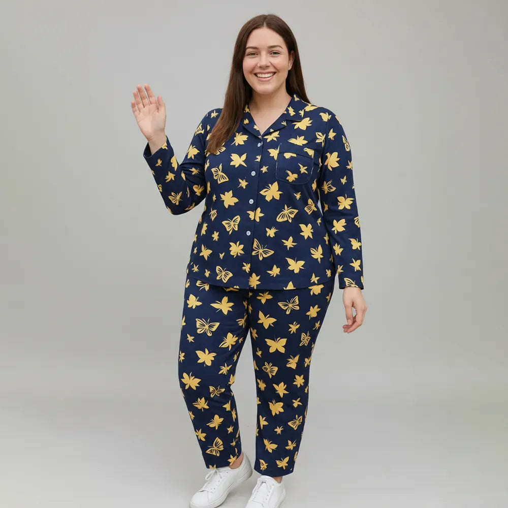 بيجامة بزراير مطبوع قطعتين حريمي فايبر لوكس مستورد تقيل الوان متعدده شتوي من ايه ال واي - 220