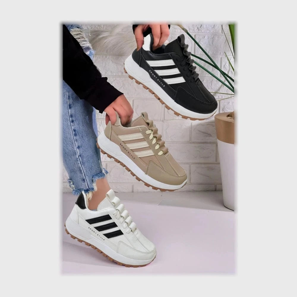حذاء سنيكرز حريمى فوندي جلد إسكاي مستورد ونعل PVC حقن الوان متعددة جميع المواسم من الشماع - HK-7-1
