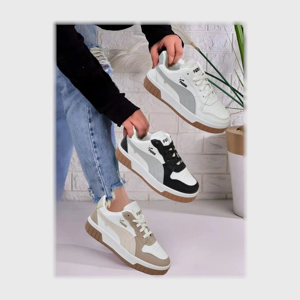 حذاء سنيكرز حريمى فوندي جلد إسكاي مستورد ونعل PVC حقن الوان متعددة جميع المواسم من الشماع - W-600