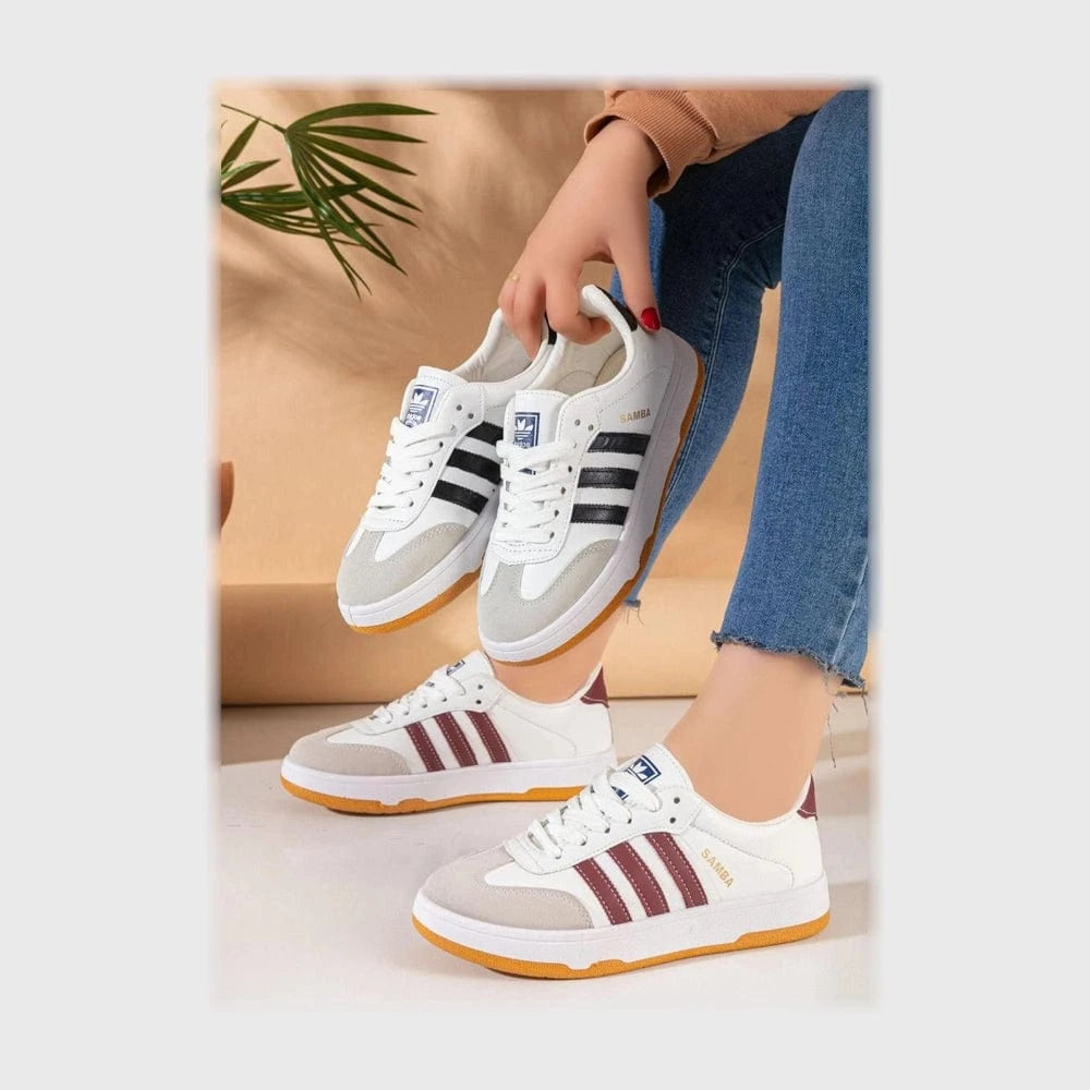 حذاء سنيكرز حريمي فوندي جلد إسكاي مستورد ونعل PVC حقن الوان متعددة جميع المواسم من ريست - 951