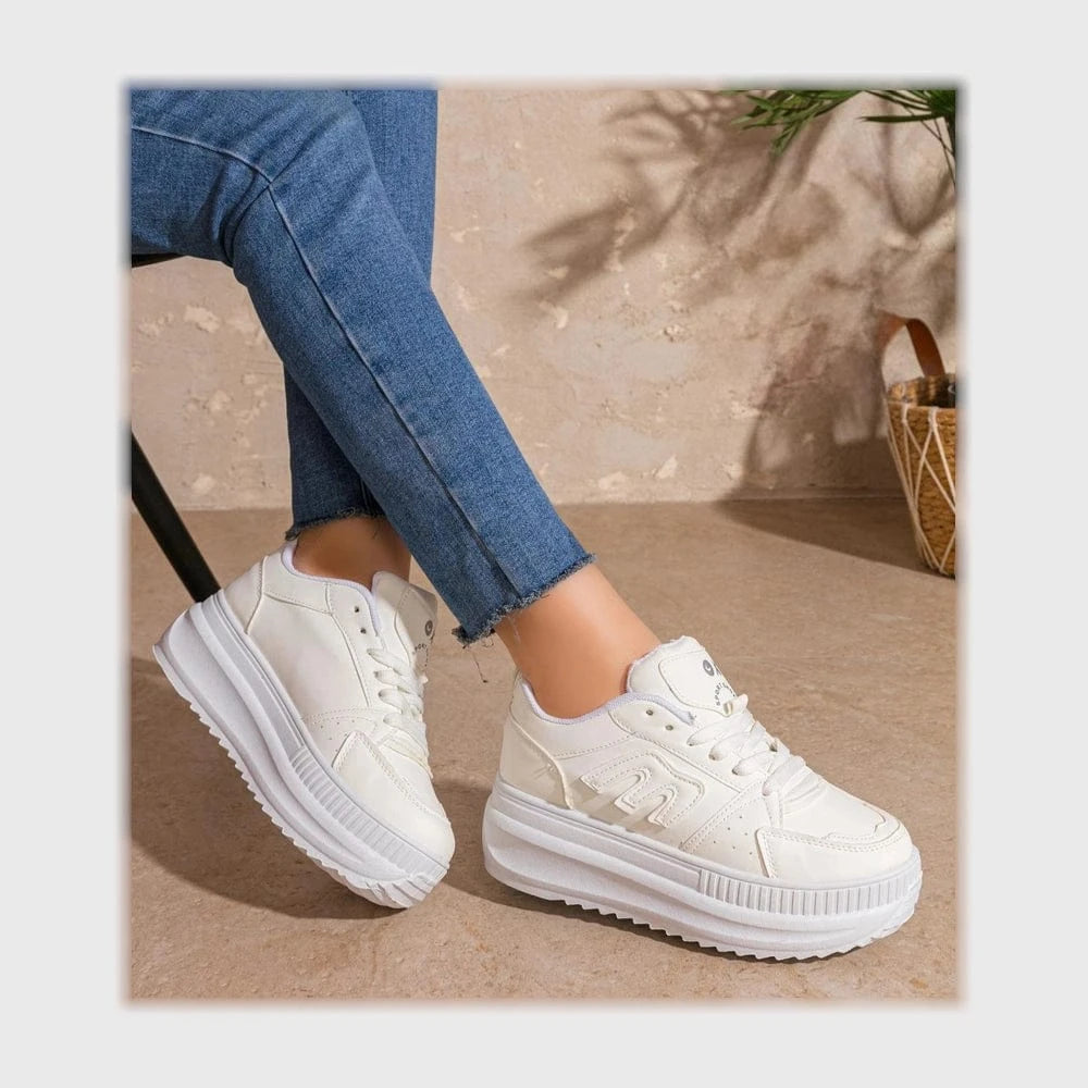 حذاء سنيكرز حريمي فوندي جلد إسكاي مستورد ونعل PVC حقن الوان متعددة جميع المواسم من ريست - 966-1