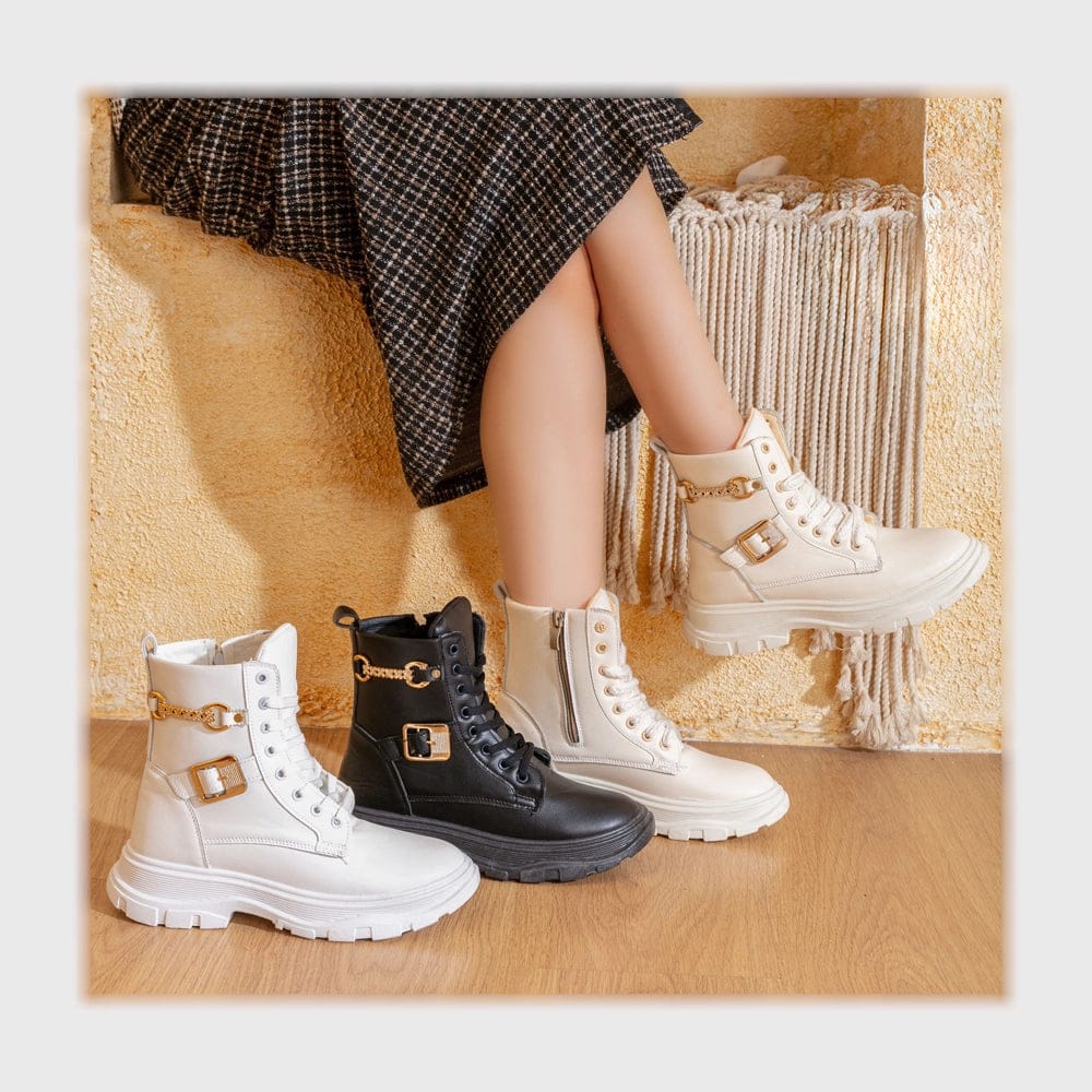 المقاسات: 37-38-39-40-41 العلامة التجارية: الطائر نوع المنتج : حذاء اللون: الوان متعددة وصف المنتج: حذاء هاف بوت الخامة: جلد الفئة المستهدفة: حريمى