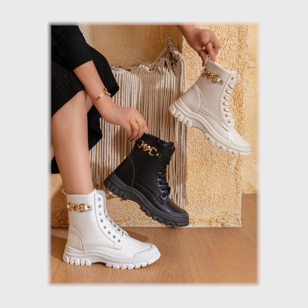 المقاسات: 37-38-39-40-41 العلامة التجارية: الطائر نوع المنتج : حذاء اللون: الوان متعددة وصف المنتج: حذاء هاف بوت الخامة: جلد الفئة المستهدفة: حريمى