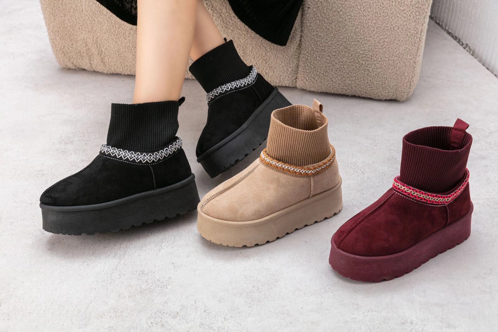المقاسات: 37-38-39-40-41 العلامة التجارية: جوجو نوع المنتج : حذاء اللون: الوان متعددة وصف المنتج: حذاء هاف بوت الخامة: شمواة الفئة المستهدفة: حريمى