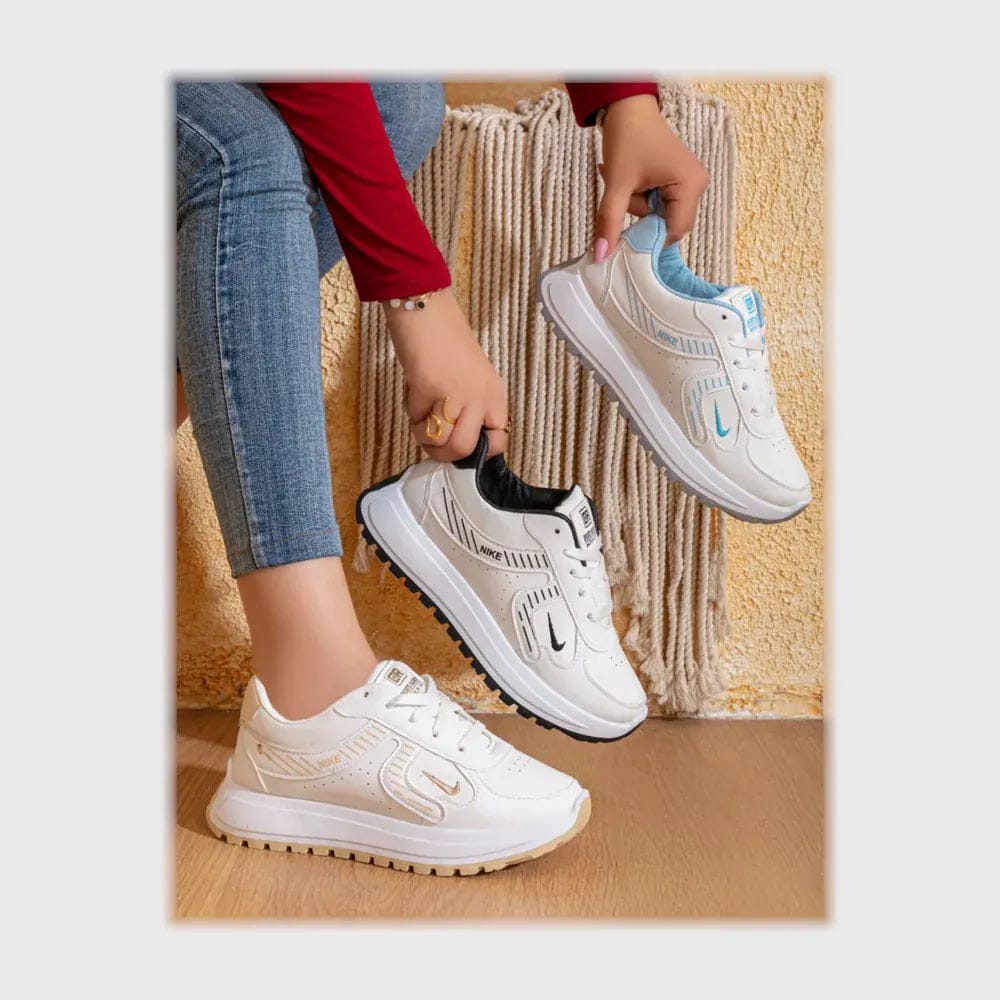 حذاء سنيكرز حريمى فوندي جلد إسكاي مستورد ونعل PVC حقن الوان متعددة جميع المواسم من كيو ار - 29018