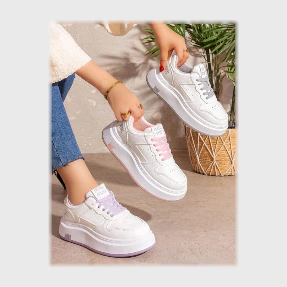 حذاء سنيكرز حريمى فوندي جلد إسكاي مستورد ونعل PVC حقن الوان متعددة جميع المواسم من ان ستايل-SR-230