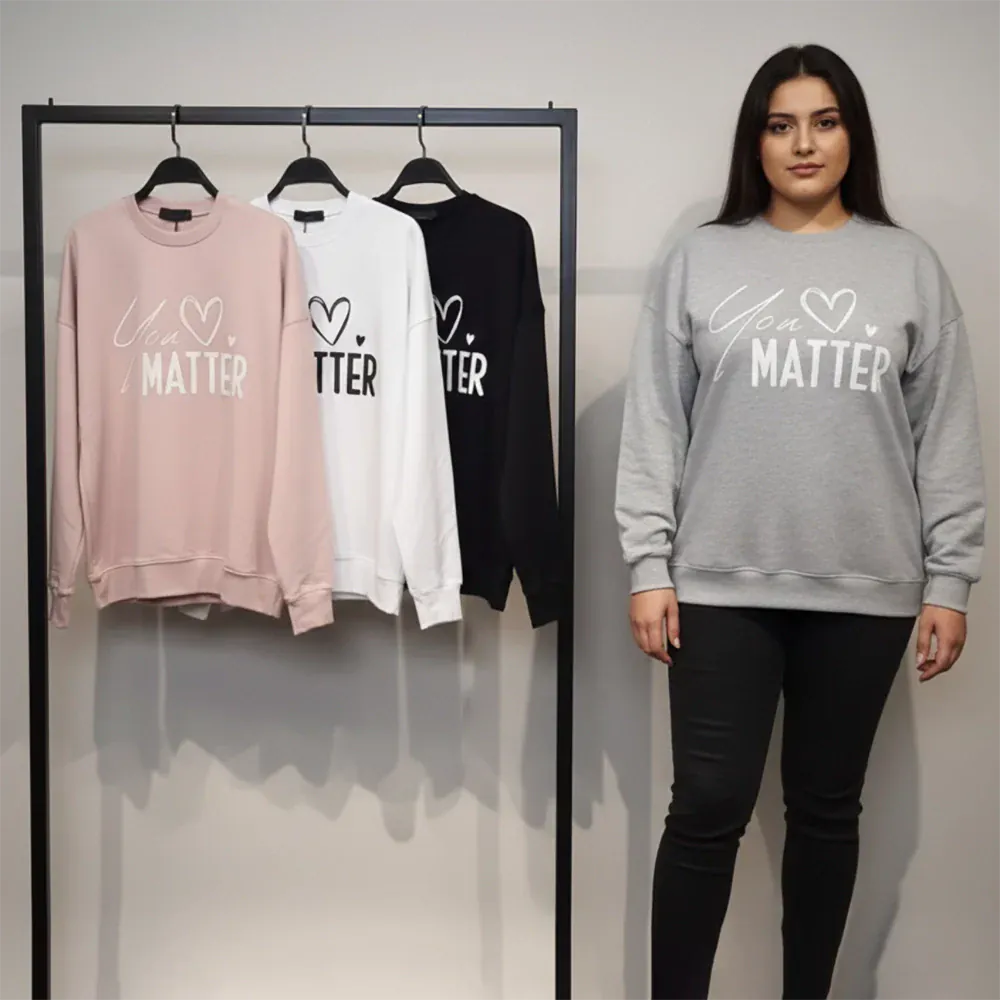 المقاسات: M - L - XL العلامة التجارية: دبيو بي نوع المنتج : سويت شيرت اللون: الوان متعددة وصف المنتج: سويتشيرت راوند مطبوع الخامة: سمر الفئة المستهدفة: حريمى