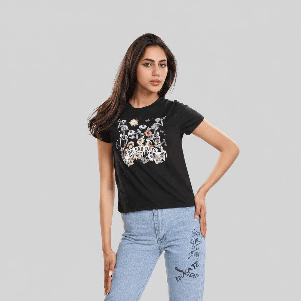 تيشرت مطبوع حريمي قطن اسود صيفي من سالي-S18