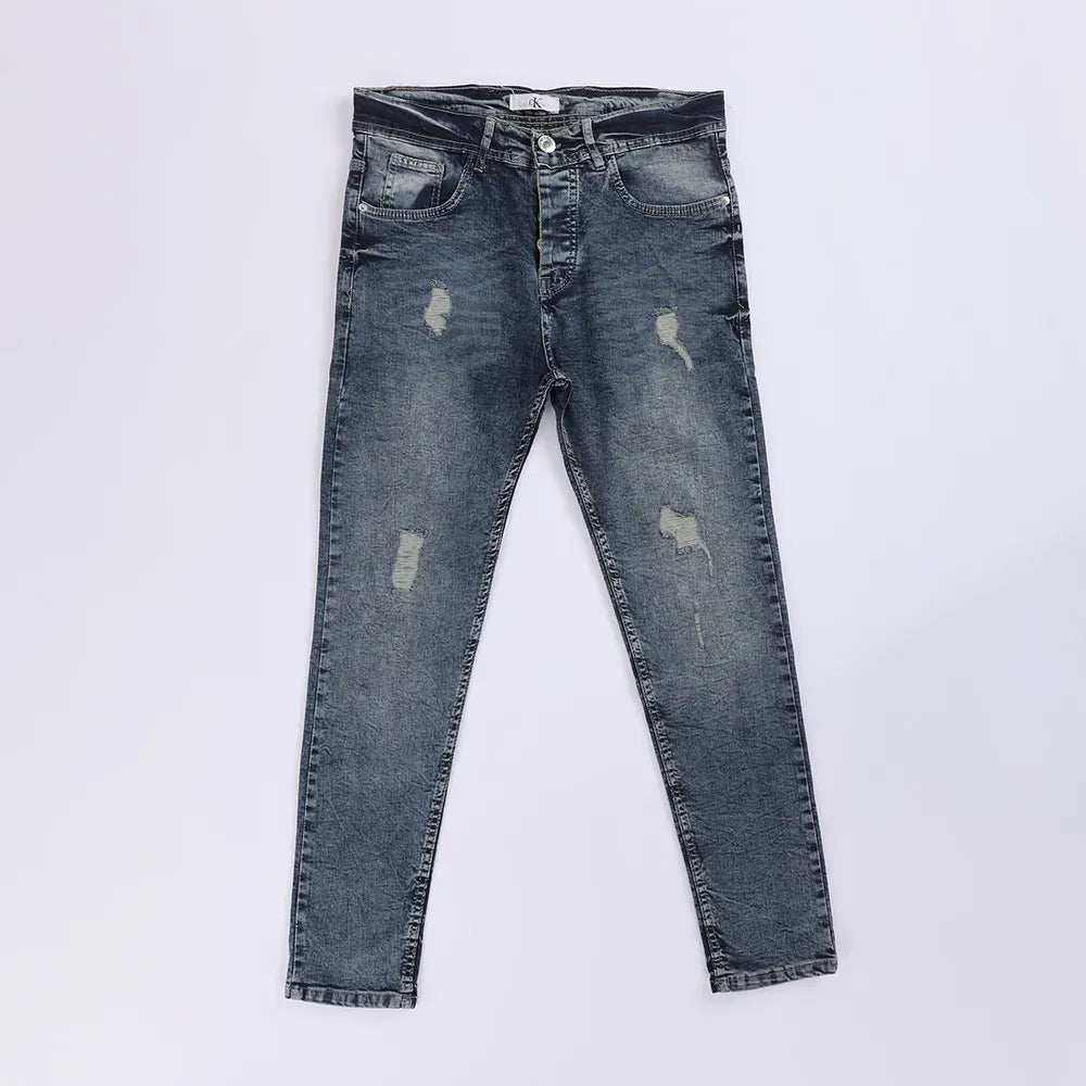 بنطلون جينز تقطيع رجالي نيو سكاي قطن ازرق جميع المواسم من اس كيه اتش - 111793-K