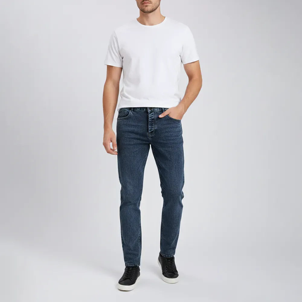 بنطلون جينز ساده رجالي نيو سكاي ليكرا كحلي جميع المواسم من اس كيه اتش - 109507-NV
