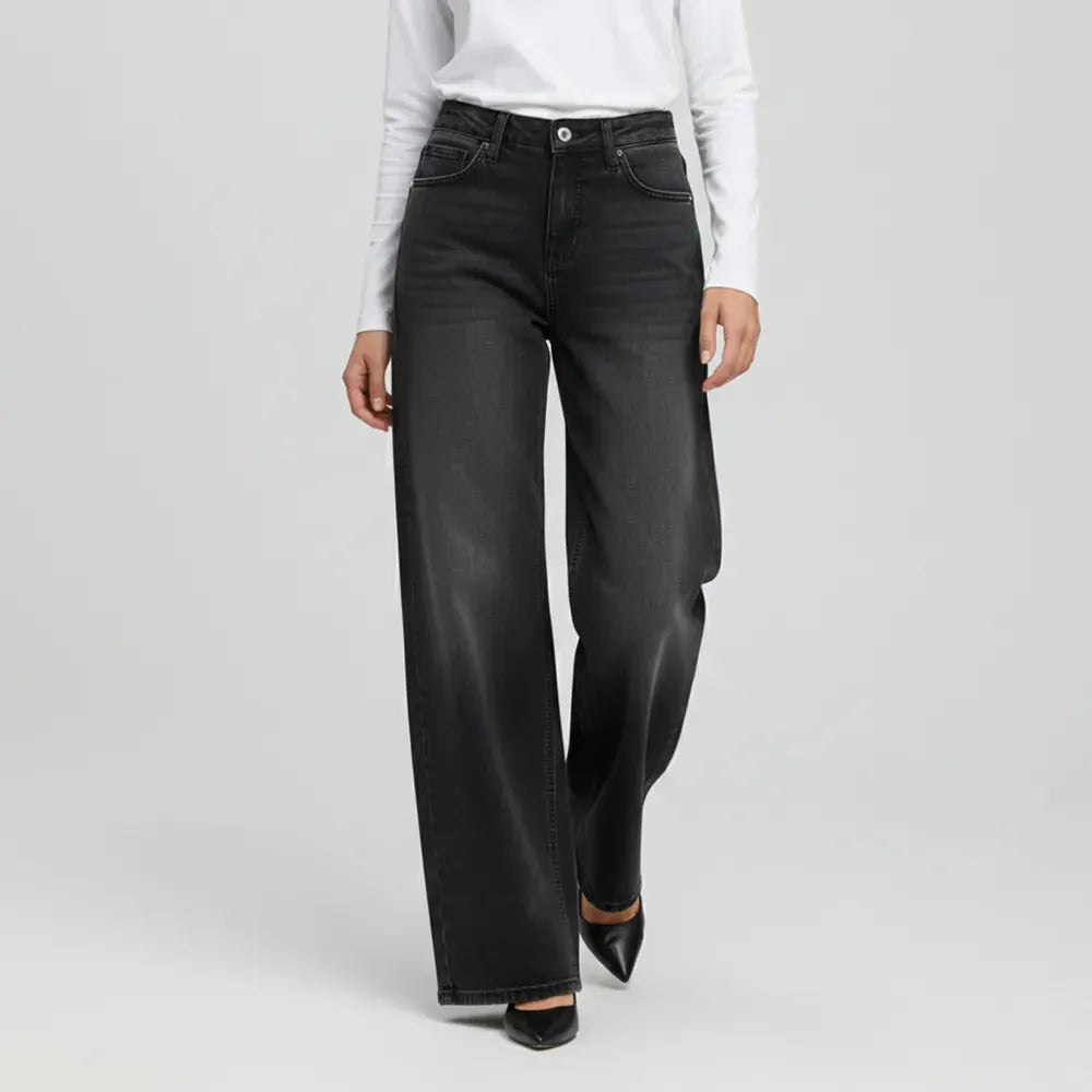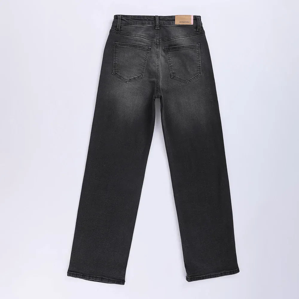 بنطلون جينز وايد ليج حريمي ليكرا مستورد رمادي غامق جميع المواسم من عربي جينز - Jeans-Dark grey
