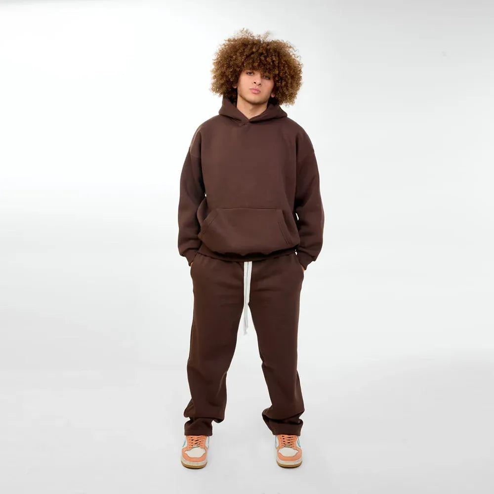 بنطلون وايد ليج ساده للجنسين قطن اسفنجي بني جميع المواسم من اتش - Pant-Brown