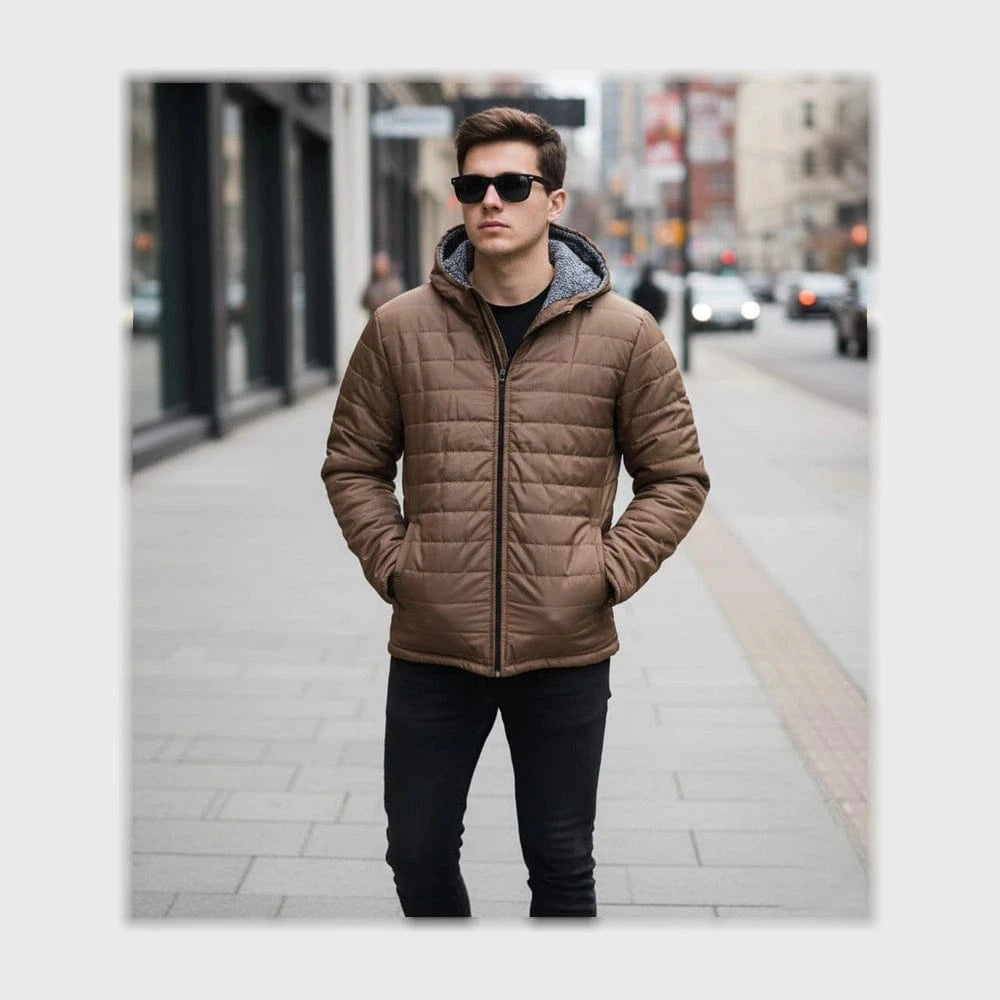جاكيت بامب بكابيشوه ووتر بروف مبطن فرو رجالي سوفت بني شتوي من كيه اتش ال - PUMP-2-BR