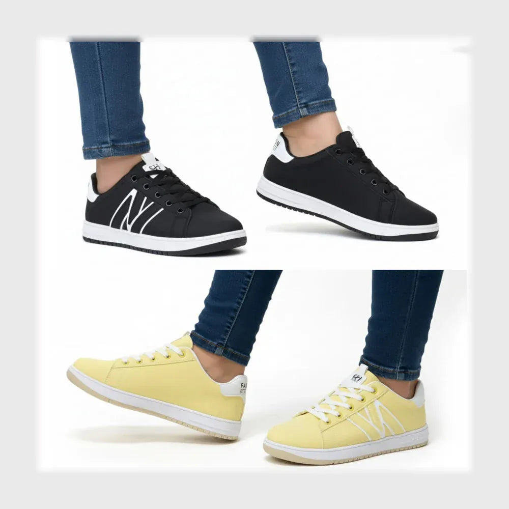 حذاء سنيكرز حريمى فوندي جلد إسكاي مستورد ونعل PVC حقن الوان متعددة جميع المواسم من الشماع - h-150-yl